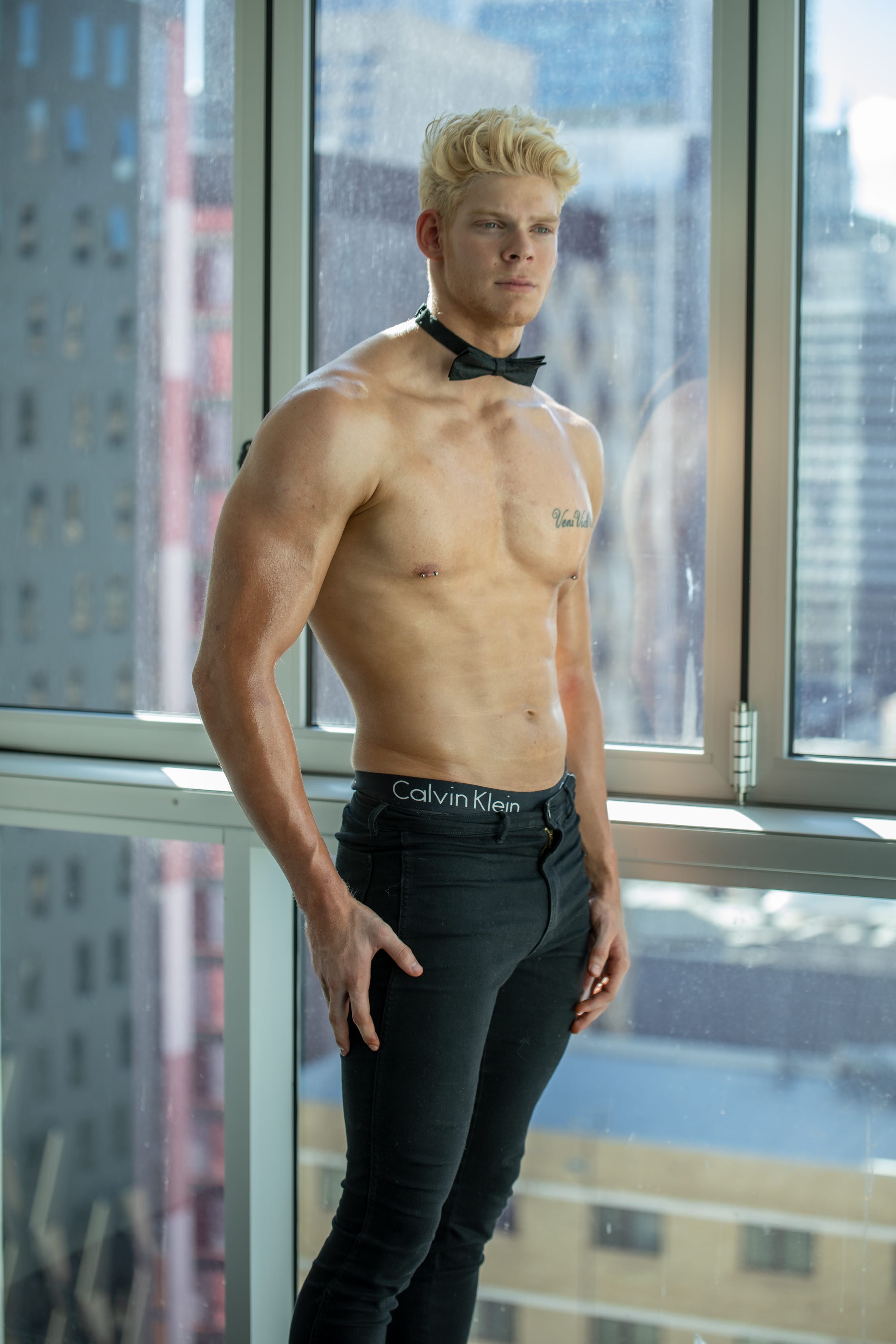 Whatever the challenge is, he’ll face it and come out of it victorious – to your benefit. So bring this package of brains and brawn to your party by booking Bodhi as your topless waiter now.