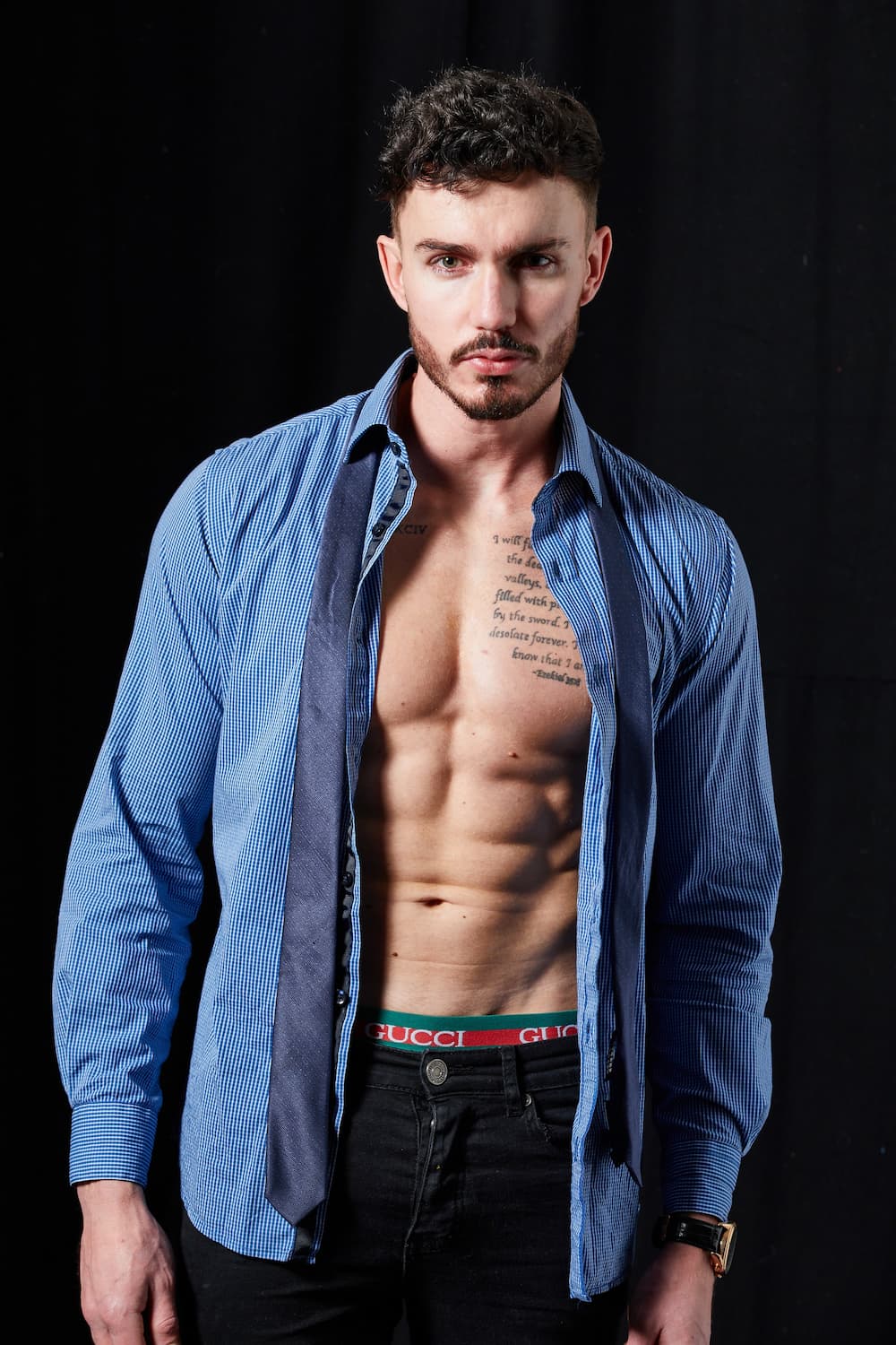 Kyle is tall and is sure to stand out in a room as a topless waiter, but he’s very down-to-earth. Also, he can capture the hearts of even those who are intimidated by his build and his ruggedness. This man combines a good sense of humour, an attractive physique, and an eagerness to please into a total package.